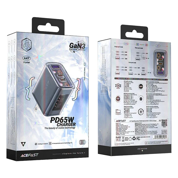 Cargador de pared de carga rápida Acefast A47 PD65W GaN Color Mica Gray (2xUSB-C + USB-A)