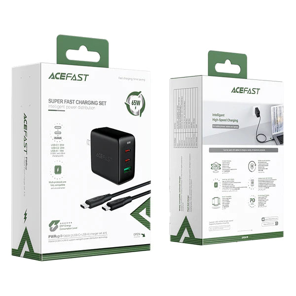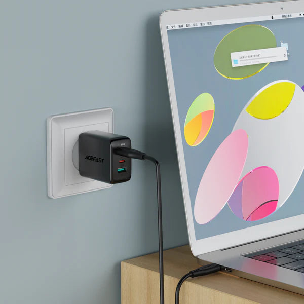 Cargador Pared PD Acefast 65W 3 puertos (USB-C+USB-C+USB-A)