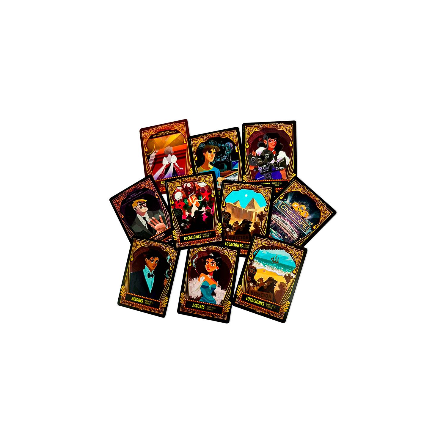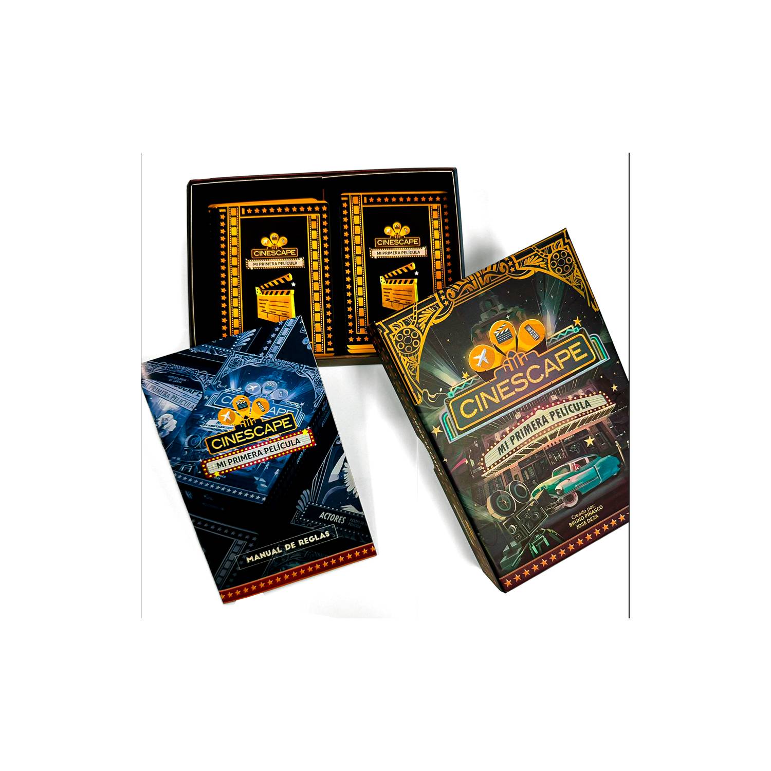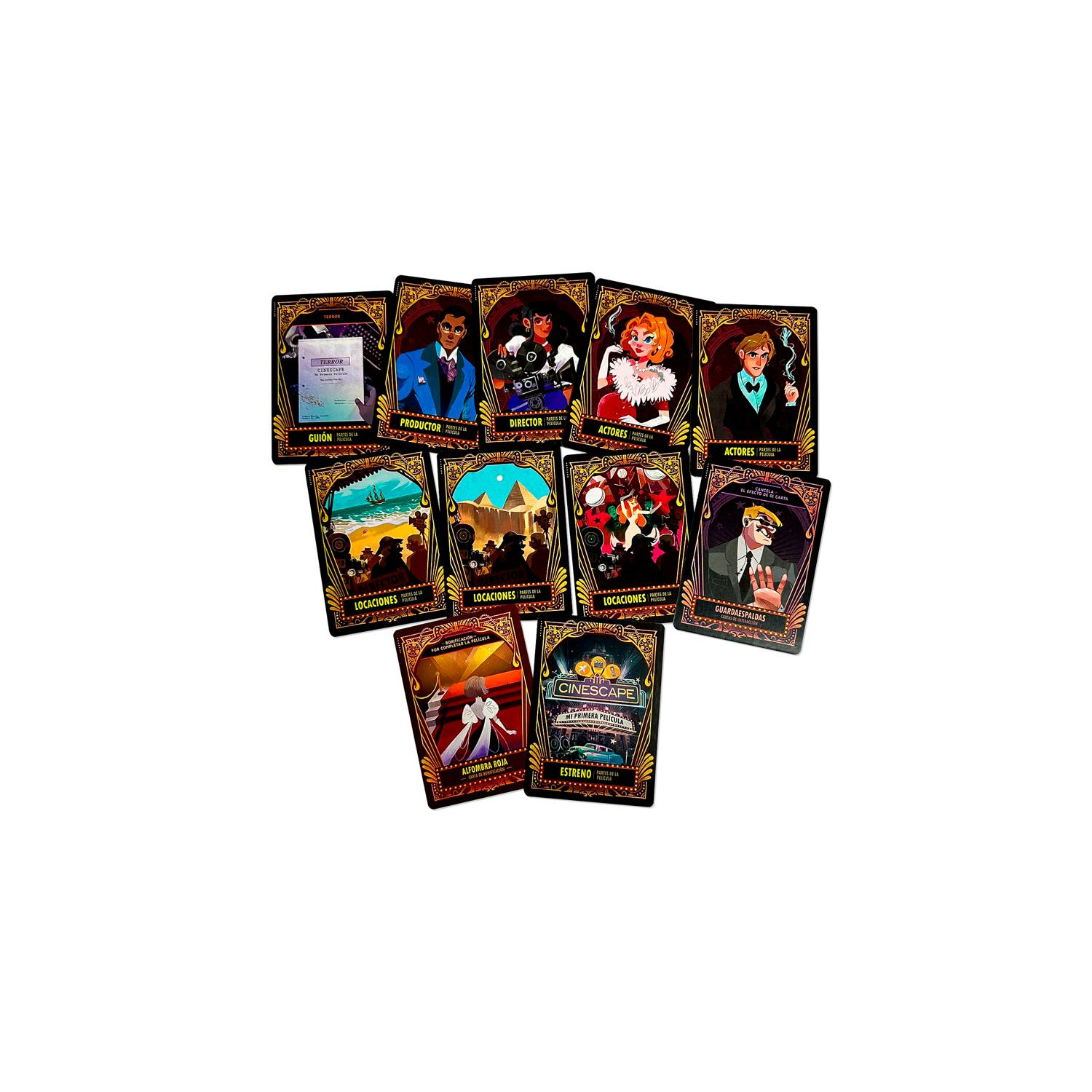 Cinescape: Mi Primera Película es un juego de cartas en donde 2 a 5 jugadores competirán por crear LA MEJOR PELÍCULA. Turno a turno deberán jugar cartas para armar su película, mejorarla con premios, agregarle más partes y personajes, etc. para al final conseguir la mejor película. ¡Pero cuidado! Habrán cazatalentos, una que otra inclemente lluvia y guardaespaldas no tan amigables (¿o sí?) que podrán hacer de tu objetivo algo más difícil.