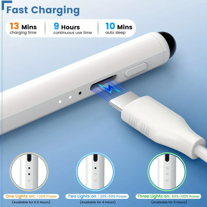 Lleva tu productividad al siguiente nivel con el Lápiz Óptico Activo de Segunda Generación. Diseñado con un elegante cuerpo de aleación de aluminio blanco , este stylus te ofrece lo mejor de dos mundos: precisión activa para tu iPad y una práctica punta de silicona en la parte superior para cualquier otra pantalla táctil.