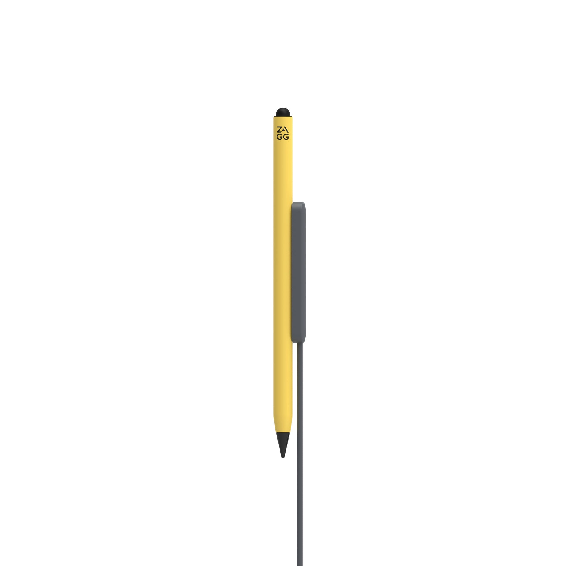 Lápiz óptico dual Pro Stylus 2 ZAGG universal. Cuenta con punta activa y punta posterior capacitiva. Carga de forma inalámbrica y tiene una batería de larga duración. Color Amarillo.