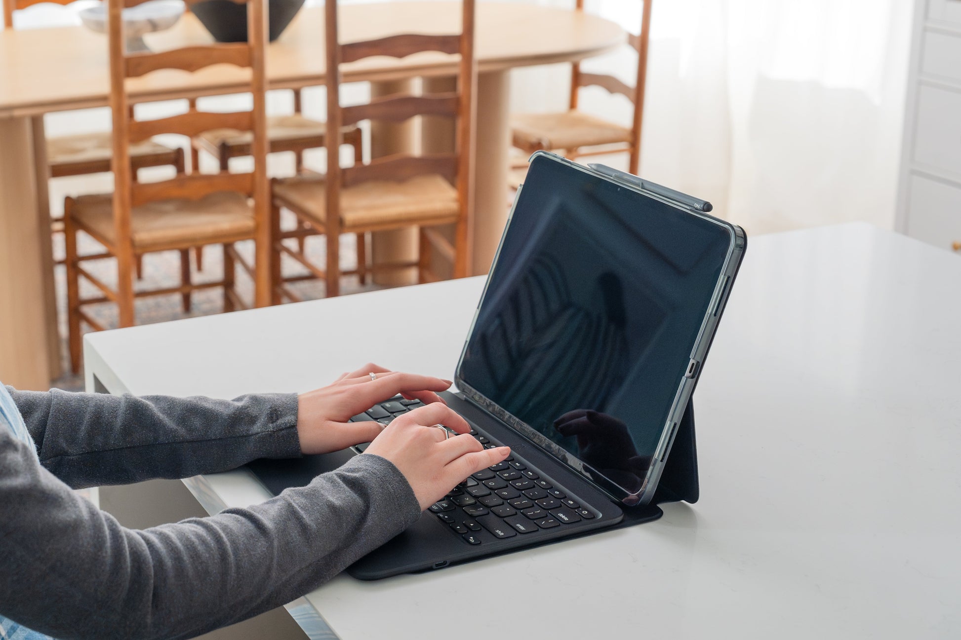 * Experiencia de Escritura Óptima: las teclas estilo laptop tienen una forma nueva y mejorada para que puedas tipear de manera fácil y precisa.